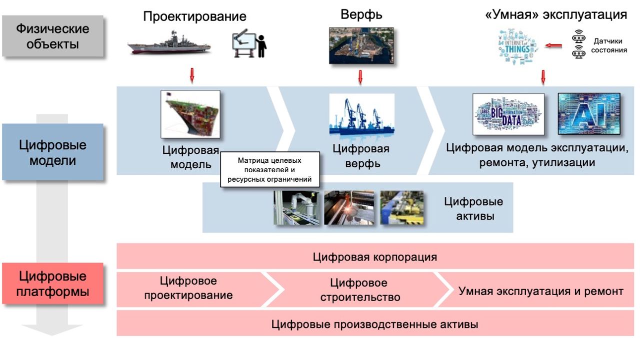 Разработаны и согласованы на верхнем уровне менеджмента основные положения и ключевые идеи стратегии цифровой трансформации холдинга. Основной упор на инжиниринговую составляющую процессов проектирования продукта и покрытие полного жизненного цикла. Сформирован мастер план реализации и портфель проектов. Произведена бюджетная оценка стоимости портфеля реализации. Выполнены аванпроекты по двум ключевым цифровым платформам из пяти, при нулевых затратах. Платформы: «Управление жизненным циклом гражданской продукции для этапов эксплуатации, ремонта и модернизации», и «Управление производственными активами на основе их цифровых «двойников» в рамках их жизненного цикла и производственной загрузки»